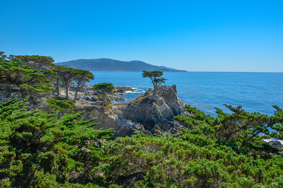 A beautiful photograph of Monterey Bay featuring the Lone Cypress, one of the most photographed trees in the world. This grand view of the land meeting the sea is sure to draw attention wherever it’s hung.
